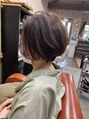 前髪長めのショートボブ動きと軽さとフォルムのバランスが悪いとオバサンっぽくなるのでオシャレで可愛いバランスでカットしてます^_^カラーは中明度のアッシュです