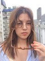 半端な長さのウエーブバングにミディアムストレートの 絶妙なバランスです!レイヤーカットプラス、ハイトーンのハニーベージュカラーで更に軽く!!