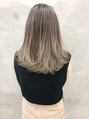 中間、根元付近はハイライト毛先はしっかりブリーチを塗布することで綺麗なグラデーションカラーになります!色味は根元は赤味を抑えたグレー系、毛先は明るめなシアグレーベージュを!