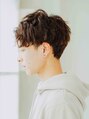 サイドを刈り上げたツーブロック。オーバーはソフトツイストでランダムな動きをつけています。【岡山】【表町】