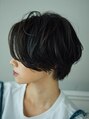 前下がりで長めに残したバングがハンサムな印象のショートスタイル。フロントが重ためな分、バックスタイルはスッキリタイトに見えるように仕上げています【岡山】【表町】