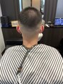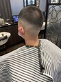 モデルのお客様は『GIカット』と呼ばれるスタイルです。簡単に言うと坊主×フェードカットのことです。シンプルかつ、フェードでおしゃれな要素を加え、スポーティで男らしい髪型です。