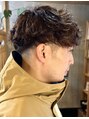 ツーブロックを両サイドに入れて後ろはエッジの効いた刈り上げ。上の部分はゆる過ぎず、強過ぎずのスパイラルパーマ。しっかり乾かしてからファイバーWaxをつけたら完成。カジュアル好きな方にはドンズバなスタイルです♪