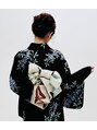 着付けはシワが無いように、襟も美しくを心がけています!帯結びも周りとはひと味違う、大人カワイイ帯結びで!!メイクはアシスタントの大島が担当しました。