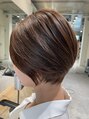 柔らかい動きが出るショートヘア。サイドの長さがあるので気になる顔まわりもカバーできて挑戦しやすいスタイルです。軽さはしっかり出しつつ、ボリューム感が必要な部分は残してあるので女性らしさがあります。