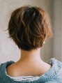 さっぱりとしたショートスタイル!カールというよりも無造作な羽感なので全体的にコンパクトに仕上がってさらに小顔効果!バングに抜け感を出すことでヘルシーな印象になりどんなお洋服のもぴったりなショートスタイル!