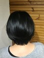 えりあしの長さをフロントから見たときに首元から髪が見えるくらいの長さを残してショートスタイルでも女性らしい柔らかい印象に仕上げています