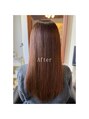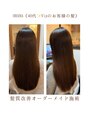 他店で髪質改善詐欺施術を繰り返し受けていて髪は硬くなり、ギシギシで広がる髪に!!半年前から毎月ご来店されやっとここまでに。最後の仕上げに高温でストレートアイロンを使用する髪質改善はごまかし施術で髪は傷みますので騙されないで下さい。