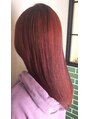 ブリーチなし 赤髪 ピンク ワンレングス ロレンドヘア