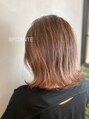 ピンクブラウン 切りっぱなし セミディ ハイライト グラデ