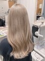 ブリーチをしてハイライトのミルクティー系カラー!黄色味を抑えた透明感バッチリのカラー!白っぽくしたい場合ブリーチは2回必要になる場合があります。