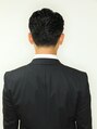 直毛でも大き目カールで自然な流れを作りました。カジュアルさとクラシックさの絶妙なバランスのスタイルです。ポマードで仕上げるとバシッと決まります。