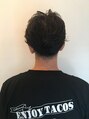 マッシュベースのカット。トップを中心にハイライトを入れ、落ち着いたトーンのグレージュをかぶせました。さり気ないハイライトがかっこいい、大人の男性にピッタリのカラーです。