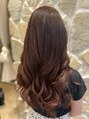 ブリーチでバレイヤージュをいれ、ピンクオレンジをオンカラー。明るいピンクは、肌色も綺麗に見せてくれるのでオススメです。