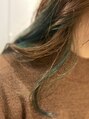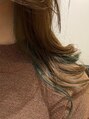 インナーをブリーチ後、鮮やかなエメラルドグリーンをオンカラー。サイドからチラッと見えるカラーがポイントになりとても可愛いです。