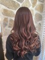 しっかり濃いめのチェリーレッド。毛先のみブリーチ毛になります。