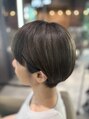 ハイライトをしっかり太めに入れて、赤味が出ないようにイルミナのマリーンでオンカラー。コンパクトなショートスタイル。