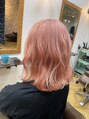 ハイトーンピンク。退色しても非常に綺麗なホワイティーベージュになります。こちらは、2回ブリーチ使用しております。ピンク系カラーは退色が綺麗なので、一回のブリーチでも退色はなかなか綺麗です!退色や色落ちまで含めて相談のります!