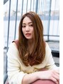 重くなりがちなロングもベージュカラーでツヤと柔らかさがでるように。顔周りにレイヤーを入れて、巻いたときにふわっと空気感がでるようにしています。