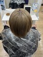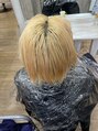 数日前に他店で暗くされてしまったけど明るくしたいとの事で染めたてなので慎重にしました!ダメージ考慮しホワイトケアブリーチ等使用しハイトーンに見えるように☆