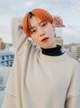 ダークルーツのオレンジカラー。ダークルーツとは、根元が暗めに染めるカラー技術です。根元を暗めに染めることで肌馴染みと奥行きが出ます。発色強めのカラーの場合は根元暗めのダークルーツカラーがオススメです!