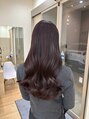 深みのあるピンクブラウンで、暗めでも重く見えない艶感たっぷりのロングスタイル☆赤みを抑えつつ、柔らかさと透明感をプラスしています。毛先は巻いた時にまとまりが出るように整えて、大人っぽく上品な仕上がりに☆