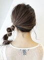 サイドでローポニーにし、紐を巻き付け顔周りはウェットに。【気に入ったスタイルは「ブックマークする」ボタンを押して、ご来店時ご提示ください】グラデーションカラー,小顔,マッシュ,ふわミディ,花嫁,耳かけ,厚めバング,前下がりボブ,ナチュラルボブ
