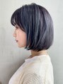 ストレートアイロンで全体的にボリュームを落とし毛先のみワンカールしたスタイル。【気に入ったスタイルは「ブックマークする」ボタンを押して、ご来店時ご提示ください】切りっぱなしロブ,抜け感,くせ毛カット,小顔ボブ,ショコラベージュ,ヘムライト