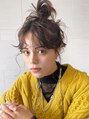 ニュアンスカールで無造作にお団子アレンジ【気に入ったスタイルは「ブックマークする」ボタンを押して、ご来店時ご提示ください】グレーベージュ,ベビーピンク,ニュアンスカラー,アッシュブラック,ミルクティーピンク,ホワイトピンク,グレージュカラー