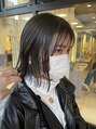 切りっぱなしで作る、オシャレな外ハネボブ。ダークトーンでもオシャレに雰囲気あるヘアは顔周りの質感を大切にカットしてます。