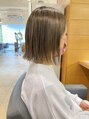 白髪ぼかしハイライトは、優しいブリーチ剤を使い全体に細めにたっぷりとハイライトを入れてから色を被せて染めていきます!明るい部分を先に作る事でコントラストが生まれ、透明感のある色に染めることができます!伸びてきた時も気になりにくい♪