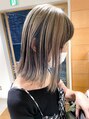 ハチ上部分をブリーチ、内側をダークアッシュにターンダウンでコントラストカラーに!!アウター部分を明るくして間から覗く暗めカラーがまたオシャレ♪