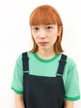 ワンレングスのボブにフルバングでポイントを☆ブリーチ後にオレンジを入れてパッと目をひくスタイル!