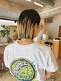 初めから髪の根元~中間まで空けてブリーチしてるので、数か月根元が伸びても気にならないブリーチです☆ブリーチ部分に上からカラー剤で色を入れてもキレイです☆ショートボブ~ボブの方、あまり段が入ってない髪型にオススメです☆