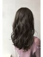 クセを生かすようなレイヤーを入れふわっとロング。かわいい印象のスタイルにクールなダークグレーを合わせて絶妙なバランスに!ダークグレーのカラーで抜け感抜群!