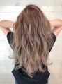 全体的なブリーチハイライトにくすむベージュ系のカラーをブレンディング。透明感があるけどもアッシュ過ぎない仕上がりが今のトレンド。アッシュが似合わない人でも合わせやすいスタイルになってます。