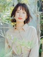 ぱっつんボブの清楚スタイル!ボブだけど重くなりすぎないよう毛先を少し軽くし、顔周りを明るくするためにバングをシースルーにします。暖色系のカラーを入れることでより顔周りや雰囲気が柔らかい印象になります。