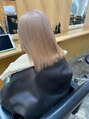 髪質改善切りっぱなしボブミルクティーベージュダブルカラー