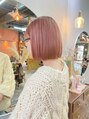ピンクベージュ髪質改善切りっぱなしボブミニボブ