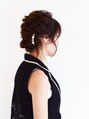 編み込みを使ったヘアアレンジ。真ん中は編み込み、両サイドはねじった毛束を集め、後ろで留めた結婚式の二次会やお呼ばれにぴったりのアレンジ。ヘアアクセを変えると、印象ががらりと変わります。【EARTH高円寺】