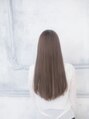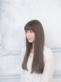 うるつやストレートのロングスタイルやわらかな雰囲気になるようにハチ上に動きをプラス。カラーは11レベルのスモーキーアッシュで透明感とおしゃれ感を目上で軽く流した前髪が目力アップの効果をショートバングでおしゃれ感UPでおすすめです