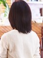 暗髮でも重く見えすぎない清楚系ミディアムボブ。ツヤ感を重視してあまり表面に軽さをいれずに内側に透け感を作りました。他にもこのスタイルならアッシュブラウンのロートーンで明るくしすぎないカラーがオススメです。