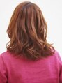伸ばしかけなどですこし飽きてなーと思っている時にオススメします♪毛先にパーマをかけるとかわいさが増します♪斜めバング、センターパート、かき上げバング☆カラーは、オレンジブラウンでツヤを出しています♪