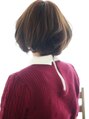鎖骨の長さにカット。表面に段を入れてよりパーマがキレイに動くようにスライドカットで調節しています。 ベージュをベースに明るめのアッシュを配合。透明感を長持ちさせるために低アルカリカラーで染上げました。