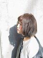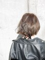 ハイライトが入った、暗髪ぱっつんボブです。光にかざすと透け感のあるアッシュグレー系カラー。前髪は短めのショートバングですが長さはお好みで!表面にレイヤーが入っているので巻いた時にエアリー感が出ます!!