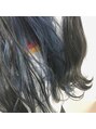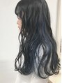 インナーブルー。ブリーチ必須です!表面は暗めのグレーにして、さりげなくブルーが出て来るようにしてます。耳にかけたりしてさりげなくブルーを出すとオシャレ。