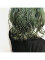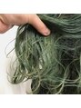 特殊系カラー。ブリーチ1回からグリーンを全力で入れてます。根元からグリーンなので派手です。グラデーションかインナーにすればナチュラルにグリーンを楽しめますよ!