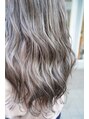 ブリーチ2回ほどしてます。シルバーとバイオレットを入れたミルクティー。透明感と柔らかさのある色になります。