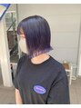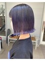根本が伸びてて毛先にブリーチ2回入ってる髪にオンカラー。根本は黒っぽい紫、毛先はバイオレットがわかるようにしてます。