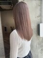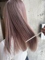 ほんのりピンクパープル感のあるミルクティー。透け感と柔らかさのある可愛いミルクティーに。ブリーチ2回ぐらいです。